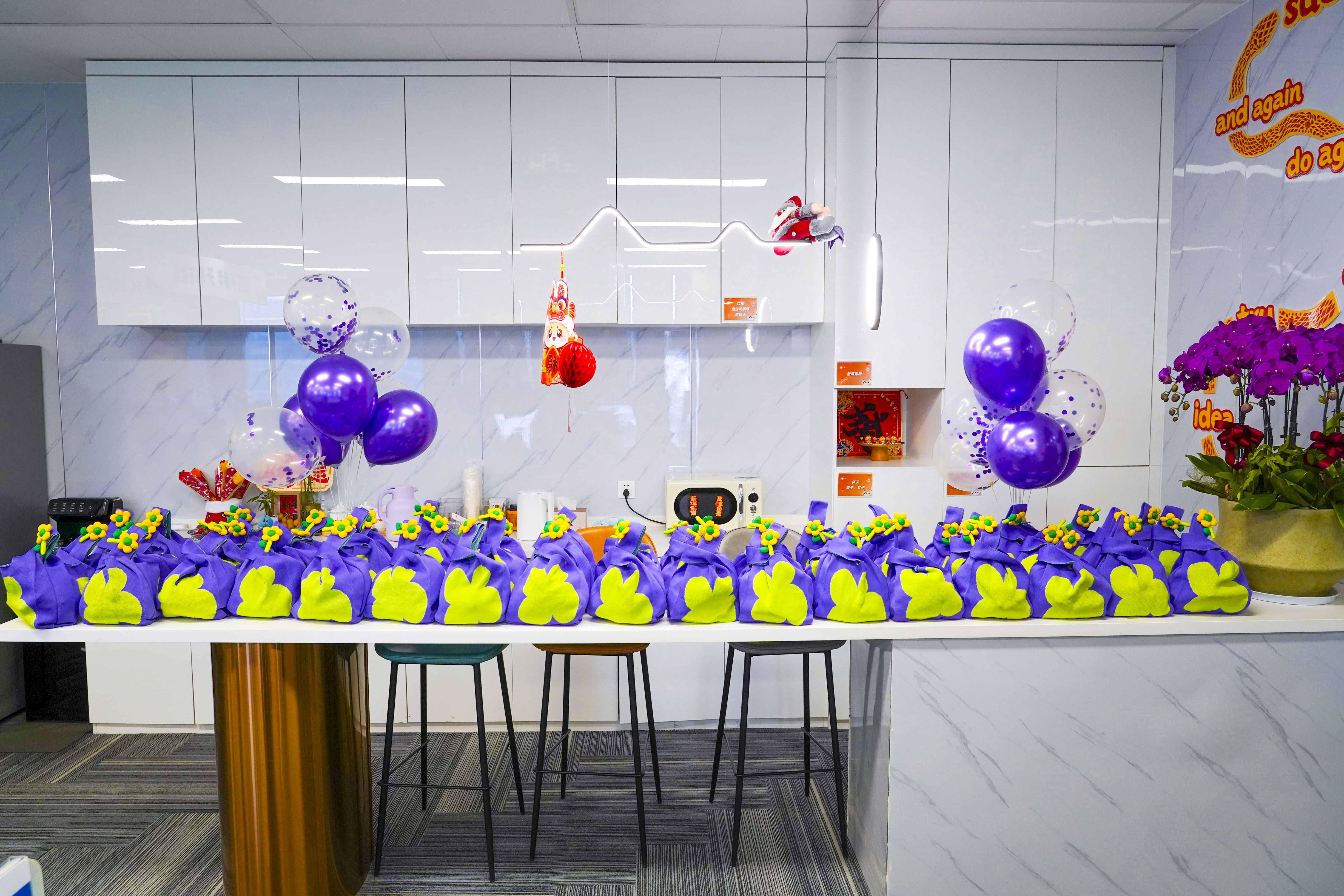 Stepping into the event venue is like a gentle encounter. The administrative team used purple and white balloons to create a little corner in the company that soothes the soul. May everyone let go of their busy schedules here and just be the protagonist of their own stories.